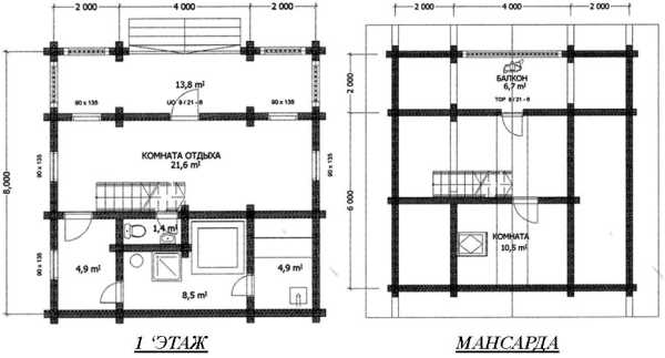 - Проект изначально подразумевает наличие бани. Чаще всего это двухэтажные строения или дома с мансардой;