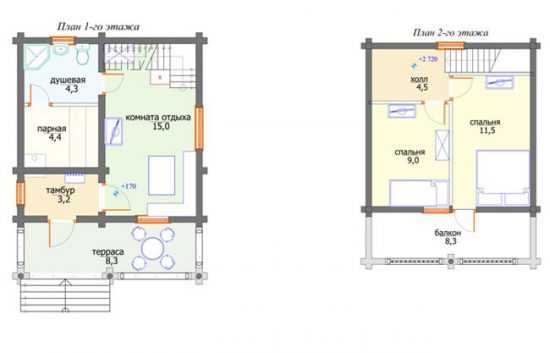 План двухэтажного дома с баней