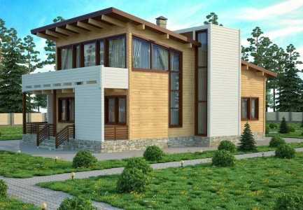 Проект деревянного дома из клеёного бруса в стиле хай-текНа данный момент, тем не менее, самые популярные проекты домов и коттеджей возводятся из кирпича или дерева. Каждый из таких строительных материалов обладает своими свойствами и функциональными возможностями. Более практично применить кирпич для возведения дома, но тёплый и уютный деревянный дом будет более комфортным.