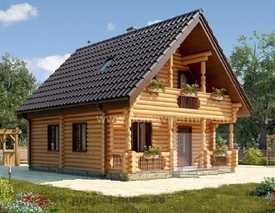 Стандартный популярный проект деревянного дома из бревнаДеревянный коттедж можно выстроить из бруса: простого или клеёного. Можно использовать оцилиндрованное дерево. Всё зависит от возможностей и потребностей. Древесина обладает большими преимуществами. Она отлично подвергается обработке, установке и оклеиванию. Также довольно просто соединять доски при помощи гвоздей или шурупов. Плотность такого материала не уступает прочности металла. Не стоит забывать, что стены из дерева обладают низкой теплопроводностью, то есть в доме будет постоянно поддерживаться нормальный температурный режим.