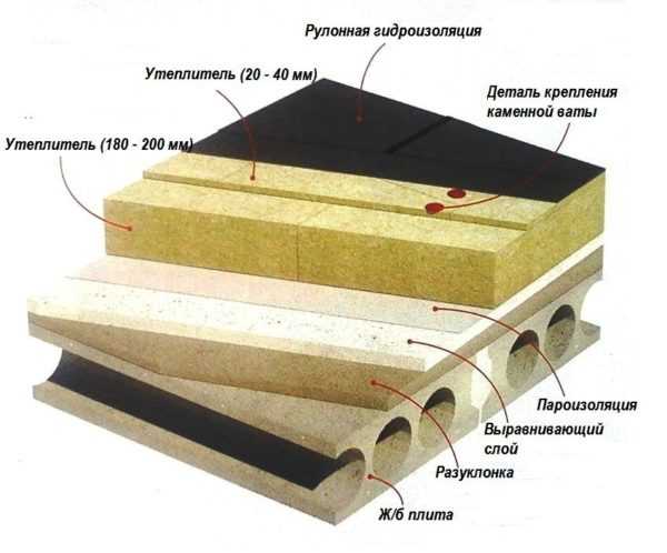 Утепление. Этот слой напрямую определяет срок и качество эксплуатации плоской кровли, а потому на его особенностях стоит остановиться отдельно. В отличие от скатных конструкций, в данном случае пространство под кровлей отсутствует. Обычно оно служит в качестве дополнительной теплоизоляции, поэтому важность качественного утепления сильно возрастает.