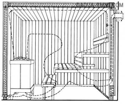 Если не организовать замену «отработанного» воздуха свежим, вместо улучшения здоровья и повышения работоспособности (именно за этим мы идем в баню) можно получить в лучшем случае вялость, слабость и головную боль, а в худшем – больничную койку или даже место на кладбище.