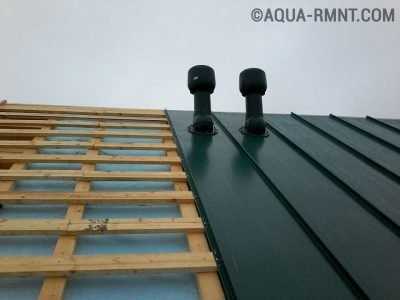 Для изготовления систем вентиляции зачастую используют обычную пластиковую водопроводную или канализационную трубу или специальную металлическую оцинкованную трубу диаметром не более 10 сантиметров. На вытяжную трубу, выходящую на крышу бани, для защиты от попадания внутрь системы осадков устанавливают зонтик из того же оцинкованного метала.
