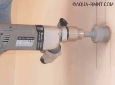 - Затем при помощи электрической дрели и подобранного бура или коронки выполняют сквозное отверстие в стене.