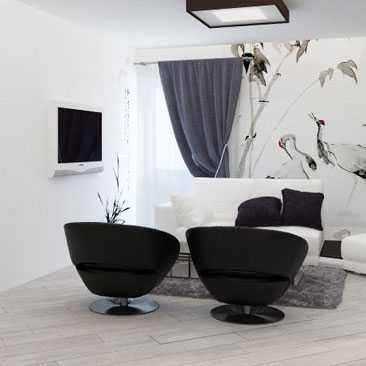 Если дизайн квартиры выполнен в черно-белых или других двухцветных тонах или в стиле минимализм, яркие акценты помогут разрядить обстановку или создать хорошее настроение.
