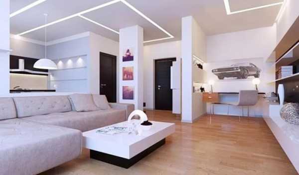 Для того, чтобы определить основные зоны комнаты, можно использовать различные осветительные приборы. В красивых интерьерах квартир в современном стиле практически отсутствует вариант центрального освещения, которое, обычно, располагается на потолке.