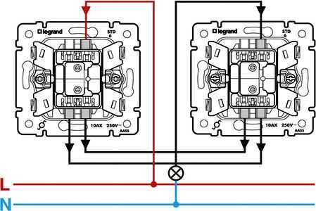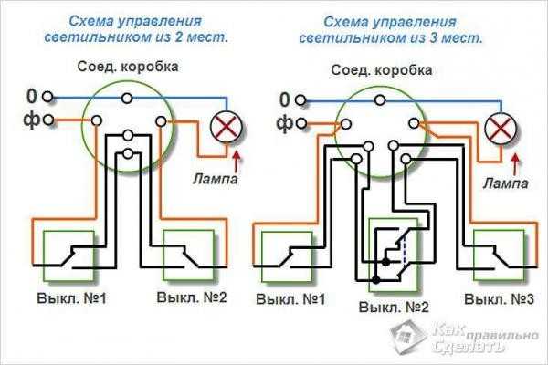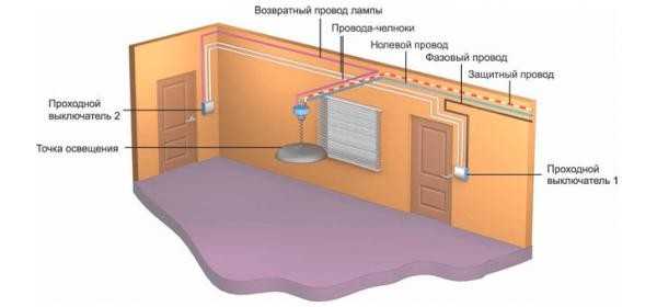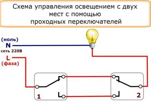 Схема подключения проходного выключателя с двумя точками управления — Фото