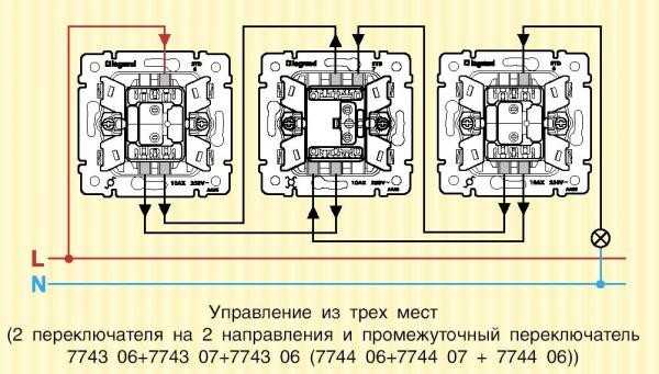 Подключение трехклавишного проходного выключателя — схема — Фото