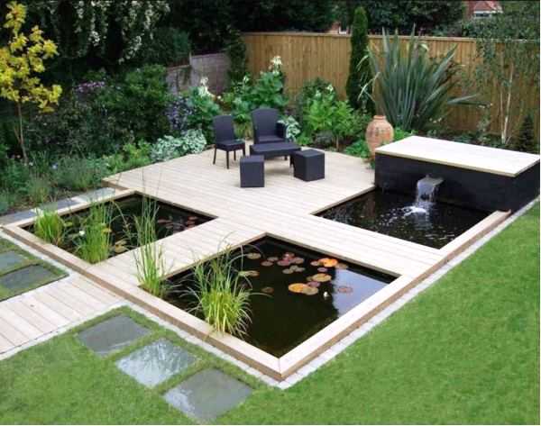 Такое сооружение можно сделать частично приподнятым по всей площади, а можно расположить ячейки на разных уровнях, да еще устроить перетекание воды из одного блока в другой. Так старую примитивную идею можно применить совершенно по-новому и добиться чудесного результата.
