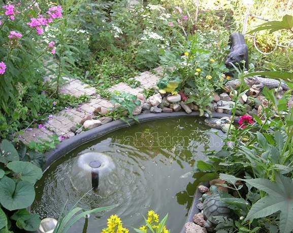 Мы уже отмечали, что сделанный своими руками самодельный пруд на даче может иметь самые разнообразные формы и параметры. Если вы запланировали строительство искусственного пруда на даче исключительно в декоративных целях, то можете использовать небольшие емкости.К примеру, можно сделать мини-пруд на даче из тазика. Он закрепляется аналогично большой ванной, но является намного более компактным. Для этих целей подойдет и ненужное корыто, цветочные горшки, бочки.
