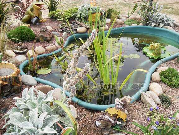Маленький пруд на даче своими руками, фотоЕсли вы посмотрите фотогалерею прудов на даче, то увидите, что небольшие прудики могут углубляться или, наоборот, возвышаться над границами ямки. Для их декора используйте крупные камушки, гравий, разноцветный песок, кирпичи, а также живые растения.