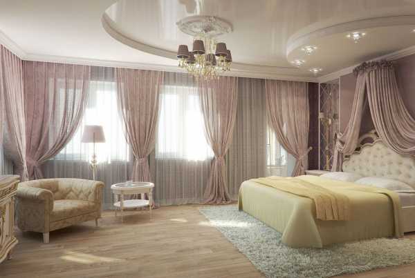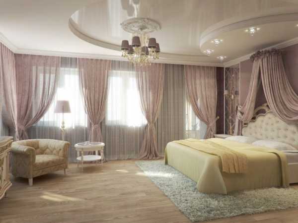Спальня – это романтичная комната, где преобладает интимная атмосфера. Отдавайте предпочтение сатиновым или матовым натяжным потолкам. Идеально подойдут светлые, нежные тона.