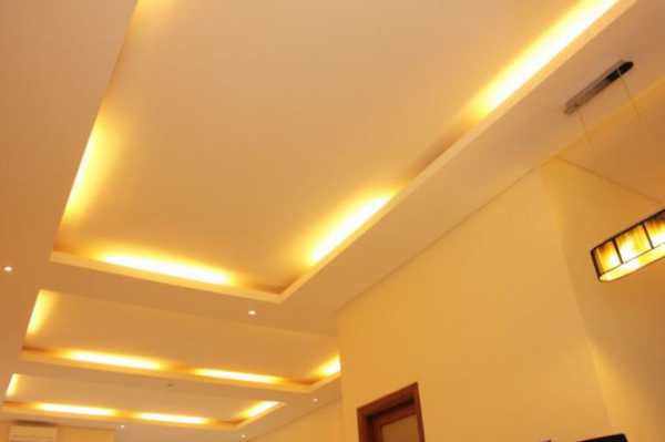 При правильном выборе освещения, прелесть и необычность светящегося потолка буквально поражает воображение. Эффектная подсветка превращает потолок в шедевр строительного мастерства. Для двух- или многоуровневой конструкции, где гипсокартонный короб может иметь самую причудливо изогнутую форму, как правило, используется боковая подсветка. Осветить можно часть потолка или весь потолок, можно менять цвет и интенсивность освещения.