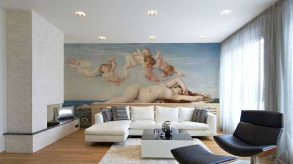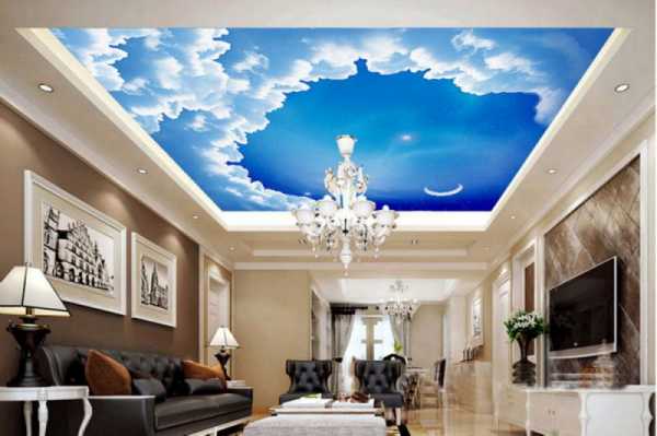 Красивейшие изображения в виде абстрактного узора, цветов, ясного голубого неба, имитации верхушек деревьев, морских пейзажей, копий известных потолочных фресок, бабочек, стеклянного купола используются не только для стильного украшения интерьера, но и для визуального расширения пространства. Например, зрительному увеличению помещения способствуют изображения с белыми пушистыми облаками.
