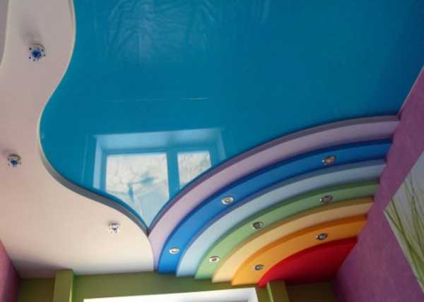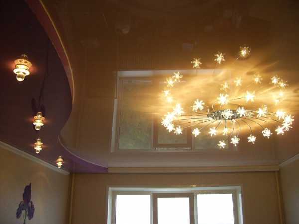 Она не занимает много места и создает веселый, иногда романтический климат в комнате. При установке лампы или делая отверстия в пластике под другой тип освещения, следует обязательно прикрепить дополнительный укрепляющий слой ПВХ. Дизайн натяжных потолков комнаты таким способом сделает комнату уютной и по настоящему «домашней».