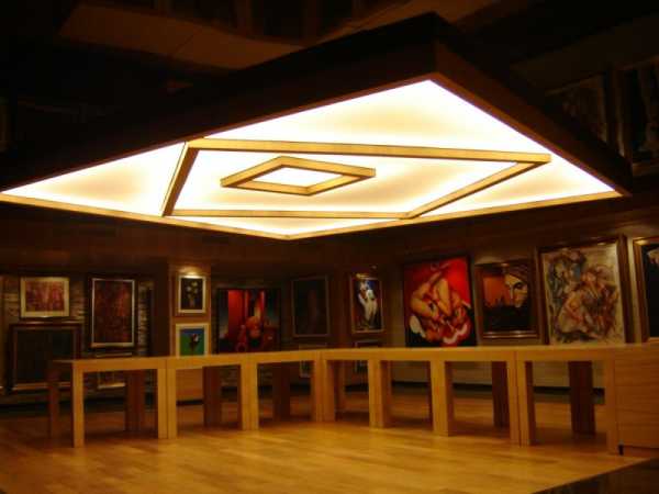 - ступенчатой конструкции с установкой светильников на любом уровне;