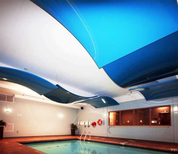 4. Потолок «парус» — разновидность «парящего» потолка, используется ПВХ пленка со стекловолокном; при помощи освещения создаются необыкновенные световые эффекты.