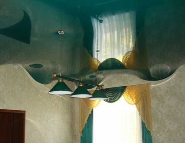 «Парящие» потолки криволинейной формы дают возможность для реализации самых оригинальных идей при оформлении интерьера помещения.