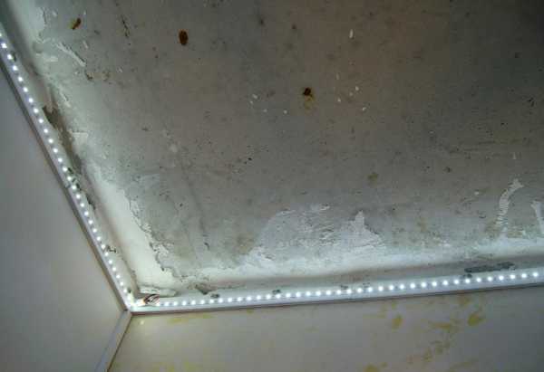 Перед началом монтажа натяжного потолка необходимо тщательно очистить основной потолок. В некоторых случаях специалисты рекомендуют делать двойной потолок, один из которых будет задерживать осыпающуюся пыль с основного потолка.