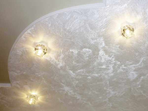 5. «Звездное небо» — выполняется при помощи современной светотехники; эффект мерцания и движения звезд создается специальным проектором; особенно эффектное полотно с оптическими волокнами, их диаметр влияет на величину звезд; используется для спальни или детской.
