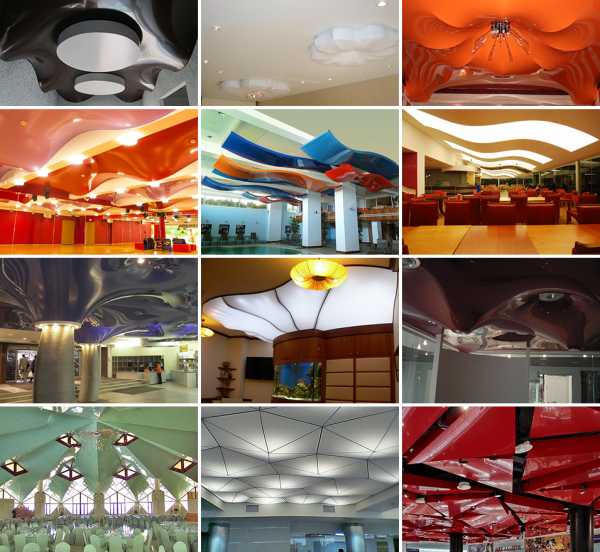 Римляне для этой цели использовали шелк. Такой потолок состоит из каркаса и растянутого на нем материала, в основном ПВХ или полиэстера с полиуретановым покрытием (без стыков и швов). Идеи дизайна натяжных потолков существуют разнообразные, давайте рассмотрим некоторые из них.