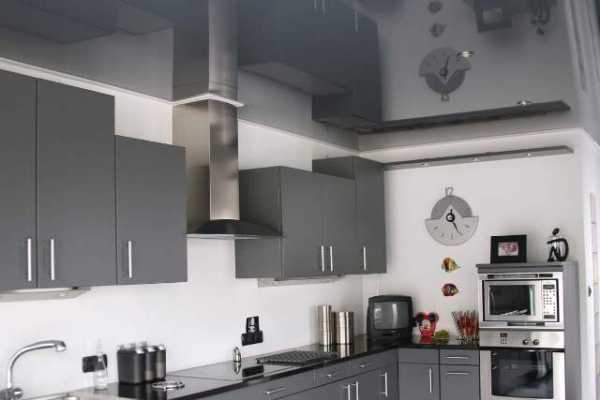 Натяжной потолок на кухне должен быть матовой модели с оттенком бежевого цвета. Также уместно при выборе цвета использовать цвет топленого молочка. Не используйте белые тона, ведь кухня – это место наибольших загрязнений. Поэтому пятна, жир – все это будет вдвойне заметно.