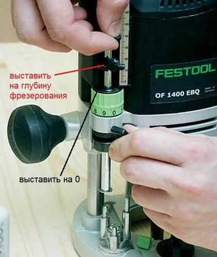 Положение фрезы фиксируется и с помощью регулятора ограничителя устанавливается необходимая глубина фрезерования. Определяется правильная скорость прибора на основании данных таблицы соответствий параметров материала и размера фрезы. Включают прибор кнопкой «Пуск» и делают контрольный рез.