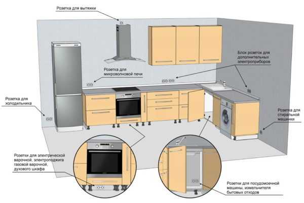 Для кухонной мебели с подсветкой запланируйте розетку для подсветки рядом с розеткой для вытяжки.