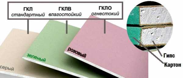 ГКЛ и ГКЛО снаружи покрывают серым картоном, а ГКЛВ и ГКЛВО – зеленым. На тыльной стороне делают разноцветные надписи: на ГКЛ и ГКЛВ – синим, на остальных – красным.