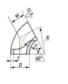 Что б правильно брать данные с таблицы необходимо сравнивать её параметры с чертежом на отвод стальной крутоизогнутый.