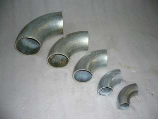 Трубы диаметром до 100 мм гнуться на трубогибе методом нагрева, и как правило не нуждаются в изготовлении специальных фитингов. Обычно для изготовления угла в 90 градусов используется 3-4 сегмента. Если диаметр трубы будет 100-159 мм, достаточно 3 сегментов. При диаметре свыше 159 мм используются уже 4 сегмента. Изготовление фитингов 90 градусов на трубы диаметром более 180 мм возможно с применением 5 и более сегментов, чтобы завихрения потока были не такими большими.