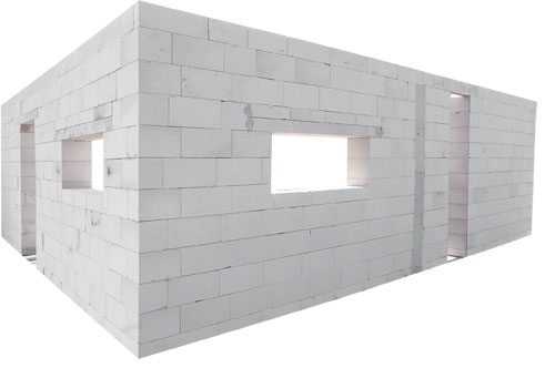 - Примерный вес готовых стен — Вес готовых стен с учетом всех строительных блоков, раствора и кладочной сетки, но без учета веса утеплителя и облицовки.