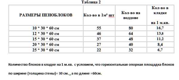 Далее приведена таблица, которая поможет рассчитать количество изделий для того или иного сооружения, а также примерную стоимость пеноблоков разных размеров и марок.