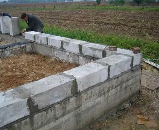 - первыми укладывают угловые блоки. Причем особое внимание уделяется углу, который по плану станет самым высоким. Угол выравнивают по уровню и приступают к следующему.