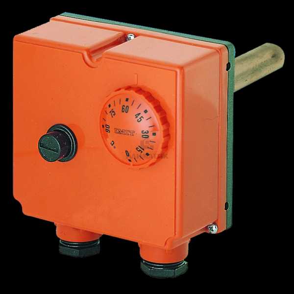 Такой датчик погружается в теплообменник, расположенный в нагревательном приборе. Его основными характеристиками являются долговечность и точность. Недостатком является полная несовместимость с программируемыми контроллерами.