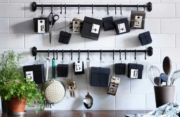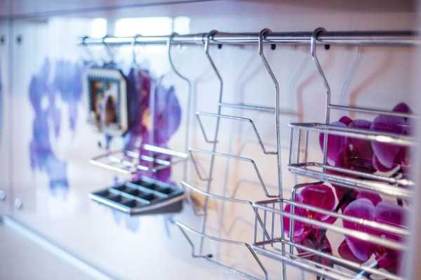 Популярный вариант – рейлинги с крючками, подвешенными на них. Удобно и функционально повесить на крючки: