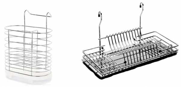 На рейлинги вешают металлические сушилки для посуды, приборов. Существует широкое разнообразие типов, конструкций сушилок. Можно выбрать: