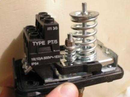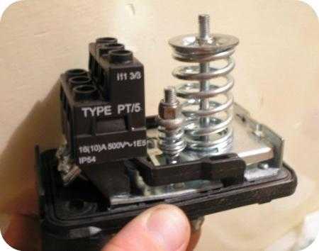 В целях регулирования пределов давления установлены две пружины. Одна из них, как, например, в модели РДМ-5, регулирует сразу обе границы, а вторая, маленькая, — дельту между пределами. Закручивая гайку, вы обеспечите повышение давления, а откручивать ее надо для ослабления.