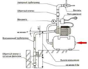 Устройство насосной станции. (Для увеличения нажмите)Чтобы понять, как работает реле давления воды, следует подробнее рассмотреть устройство самой насосной станции.