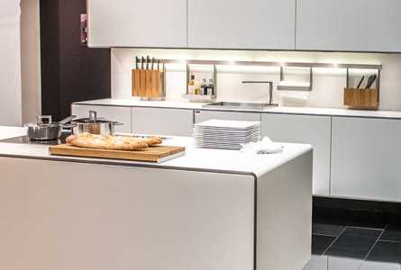 Определите – какие подвесные модули Вы будете использовать и, где их лучше всего разместить, учитывайте расположение крана, бытовой техники и прочих элементов, которые могут помешать закреплению. Высота размещения рейлинга должна быть, прежде всего удобной для Вас, при этом, не вызывая осложнений на этапе установки навесных элементов и не загораживая подсветку рабочей зоны (при ее использовании). Рейлинги могут устанавливаться практически в любом месте зоны приготовления: на стенах, на краю столешниц и, даже – на поверхностях мебели и бытовой техники, однако, набольшей популярностью пользуется традиционный метод закрепления рейлинга — к кухонному фартуку, на расстоянии около 5-10 см от края верхних модулей. Приобретать рейлинги следует с небольшим запасом и, по возможности одним, или, в случае углового монтажа – двумя целыми отрезками. Стыковка трубок в кронштейнах возможна, но должна использоваться лишь в случае необходимости.