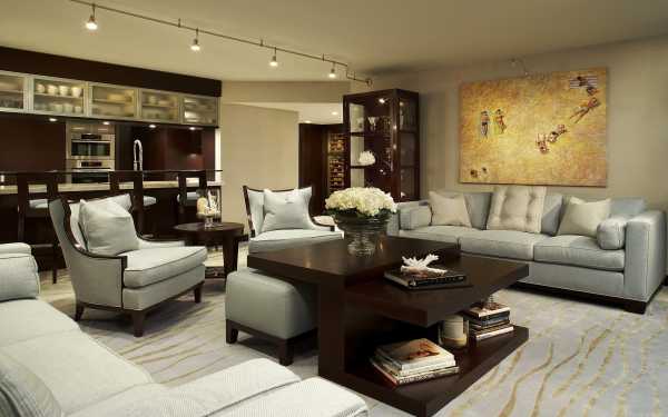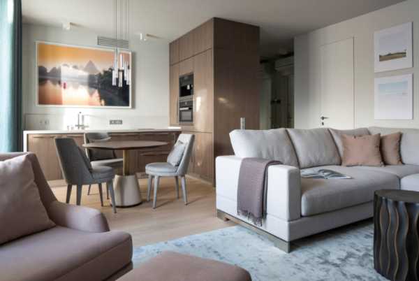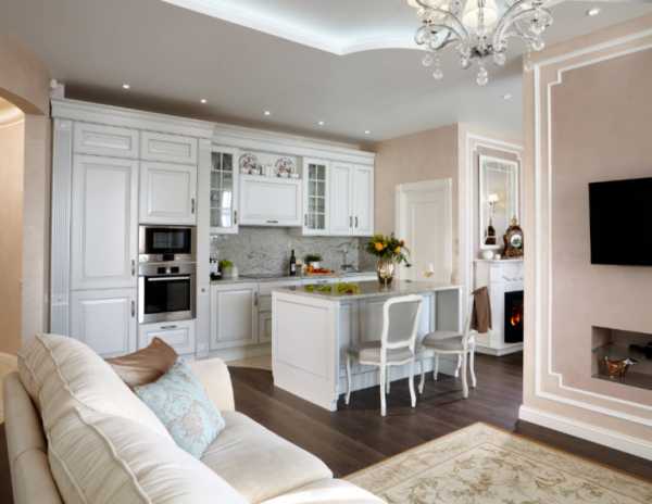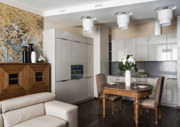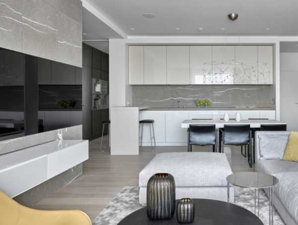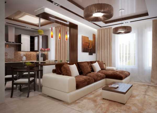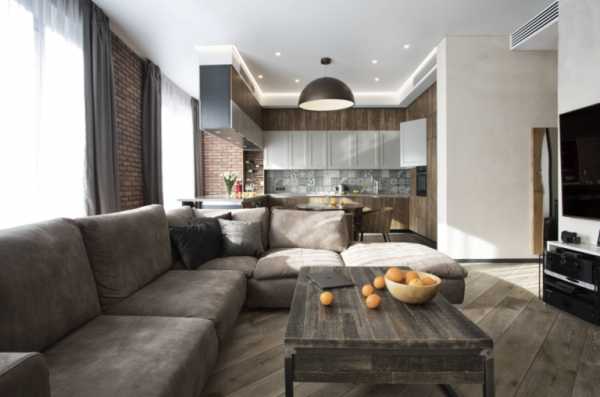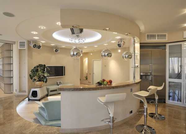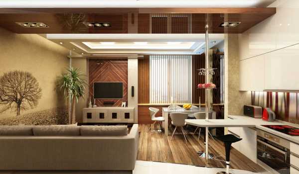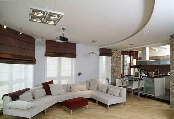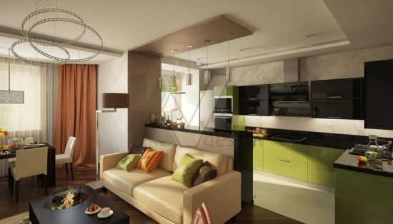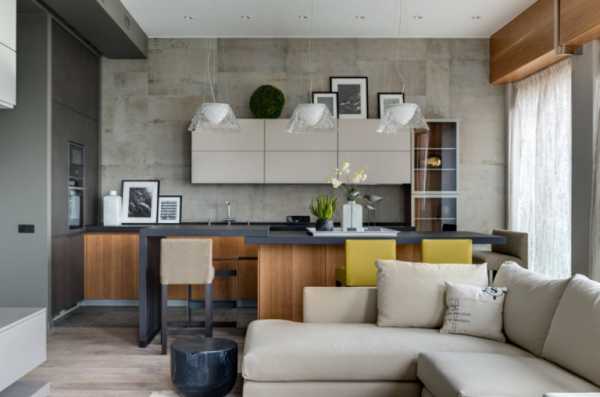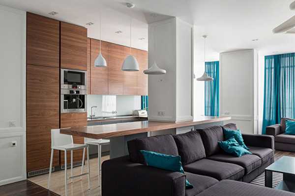 Современный дизайн гостиной совмещенной с кухнейГде уместно совмещение