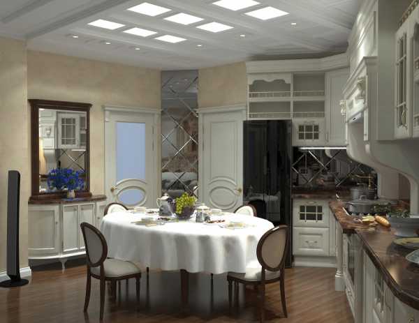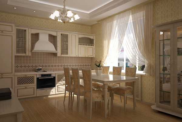 Наиболее популярными направлениями считаются классика. Комнаты в этом стиле выглядят современно, гармонично, привлекательно. В интерьере этого направления преобладают белый, коричневый, бежевый цвета. Отделывайте стены в пастельных тонах, выбирайте мебель с максимумом элементов из древесины. Подбирайте классическую мебель, в которой строгие линии и обилие древесины будто гарантируют гостю спокойствие и комфорт. Всю кухонную технику замаскируйте за панелями в тон гарнитуру.
