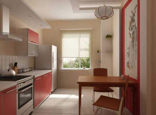 Грамотно подбирайте освещение. Чем больше света – тем шире кажется кухня. Для игры света используйте глянцевые поверхности и зеркала. Они тоже станут Вашими помощниками в расширении узкого помещения.