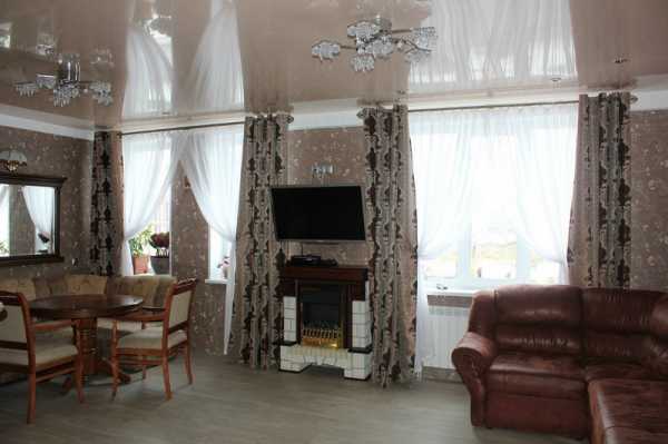 Потолок в гостиной можно украсить лепниной или сделать зеркальным, на кухне будут уместны потолочные панели, бордюры, натяжные и гипсокартонные конструкции разных цветов и фактуры.