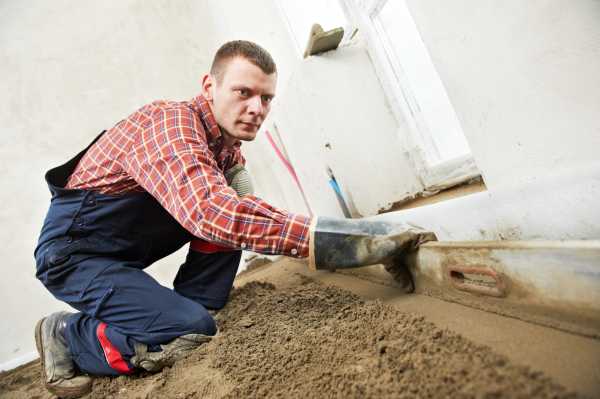 9. Заливка пола может быть как до (необходимость серьезного выравнивания), так и после подготовки стен (если достаточно лишь корректировки частями).