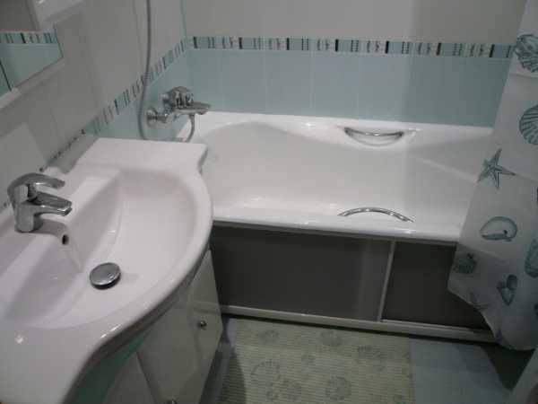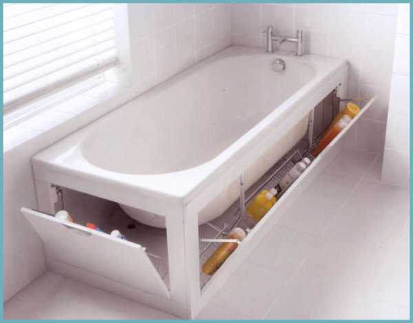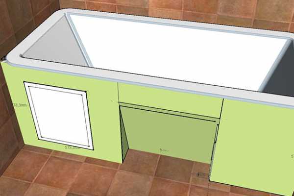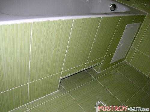 При желании можно сделать в экране специальную нишу для ног и обязательно соорудить небольшую дверцу, чтобы был доступ к сантехническим коммуникациям и сливу. Такую дверцу можно изготовить собственноручно из пластиковых панелей или приобрести в магазине уже готовую.