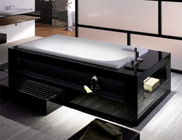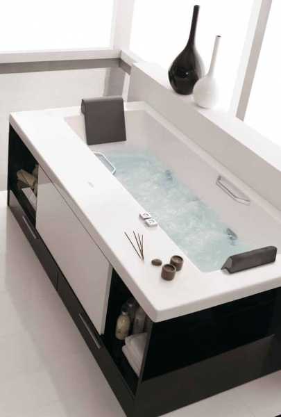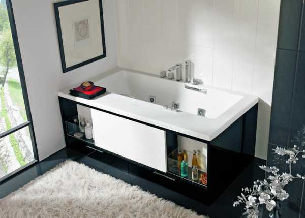 Ванна, установленная без экрана, смотрится не очень изящно даже в самой аккуратной и стильной ванной комнате. Поэтому следует хорошо подумать, как можно закрыть пространство под ней таким образом, чтобы доступ к сантехническим коммуникациям не был закрыт и была сохранена вся функциональность.
