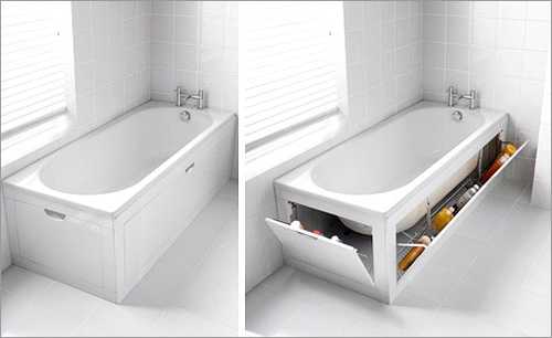 Те, кто не собираются использовать пространство под ванной как хранилище, могут установить себе гипсокартонные экраны, которые должны быть снабжены дверцей для того, чтобы у вас в случае необходимости был доступ к сантехническому оборудованию.