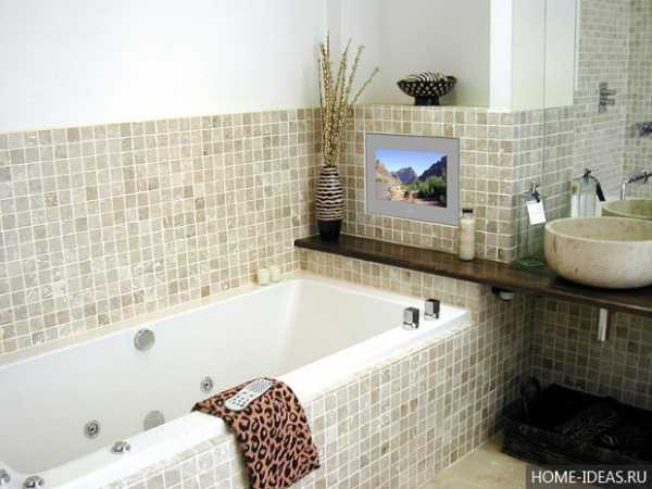 - полученная конструкция декорируется, для чего наиболее часто используется кафель или мозаика, а также допускает выбирать другие отделочные материалы, прекрасно подходящие для ванной.