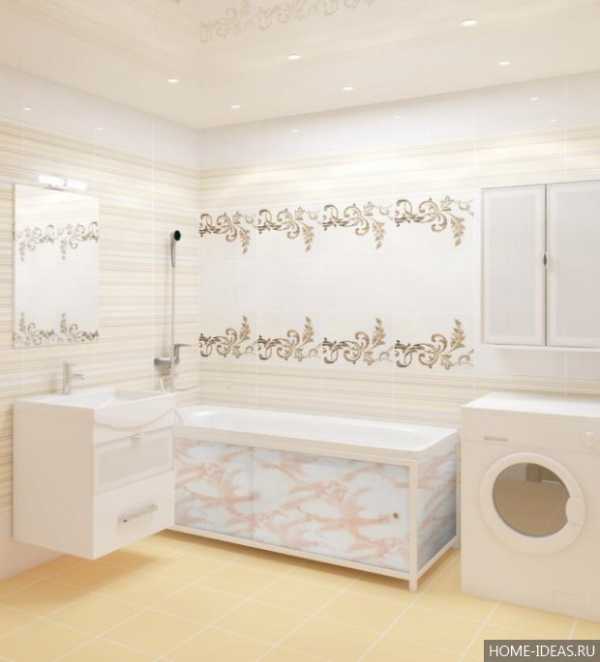 - Один из удобных составляющих элементов экрана – ниша для ног. Если в семье есть маленький ребенок, то такая ниша просто находка для мамы. Можно использовать такую нишу в качестве места для хранения стиральных принадлежностей.